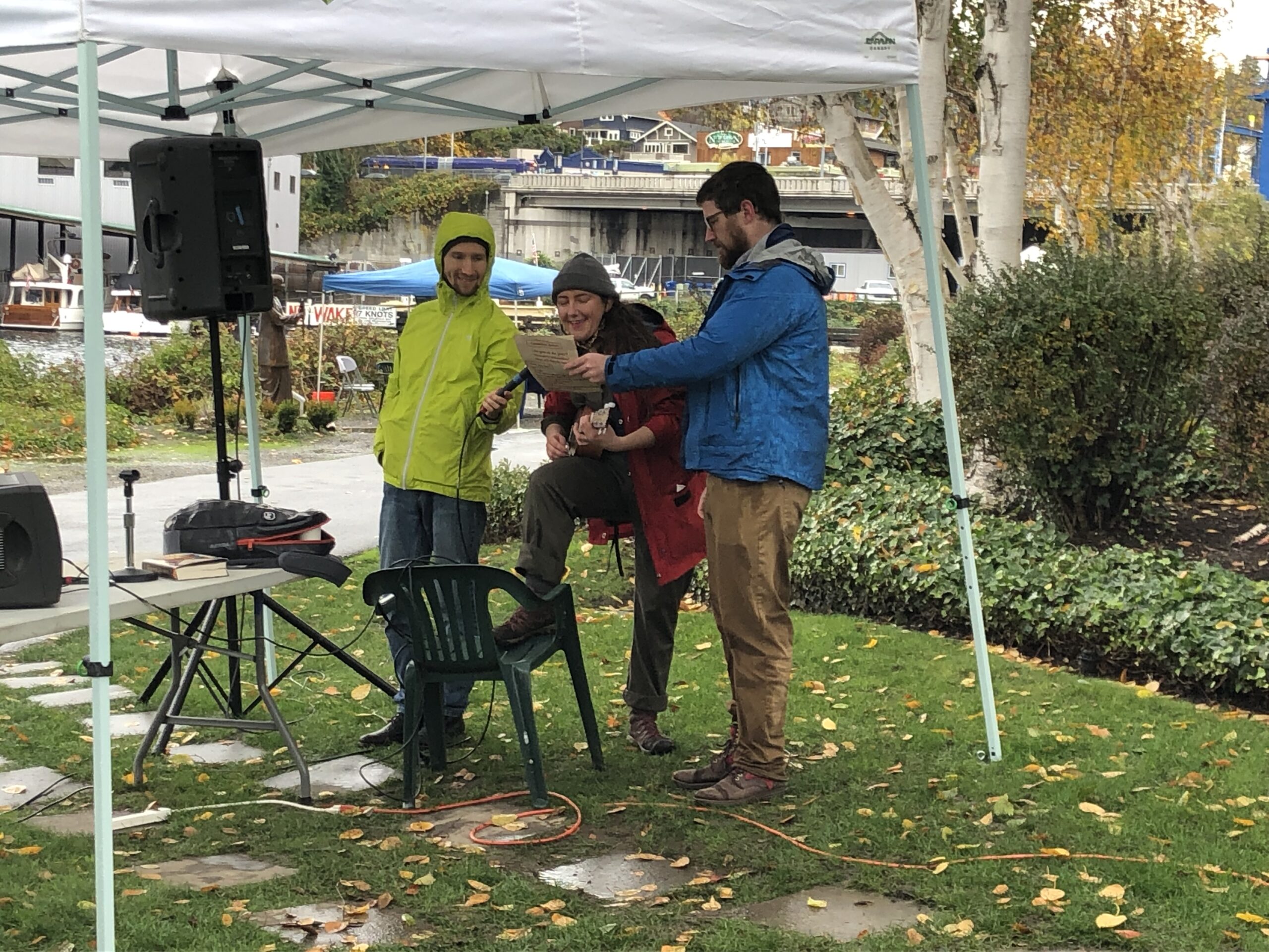 The Sweetgrass Arts project, supported by a Seattle Department of Neighborhoods grant to an allied group, enabled a community arts event that featured local and Indigenous artists who contributed poetry and graphics for banners and interpretive signage at the Fremont Bridge, and invited people to paint salmon swimming along the adjacent Burke-Gilman Trail.